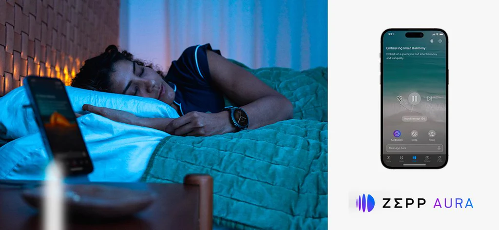 И не забывайте о важности хорошего ночного сна. Попрощайтесь с беспокойным сном с Zepp Aura — нашей системой сна и релаксации на базе искусственного интеллекта. Индивидуальная музыка? Есть. Более быстрое погружение в сон? Есть. Начните просыпаться отдохнувшим и готовым к любым испытаниям нового дня!